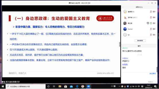 讲座中,蒋文涛结合本次新冠肺炎疫情,为同学们深度剖析了疫情现状,中国如何做到“一方有难,八方支援”的慷慨壮举,以及身为老员工应该如何学会积极应对,坚持“停课不停学”,听从党和国家统一指挥,为国家发展与社会进步贡献力量。